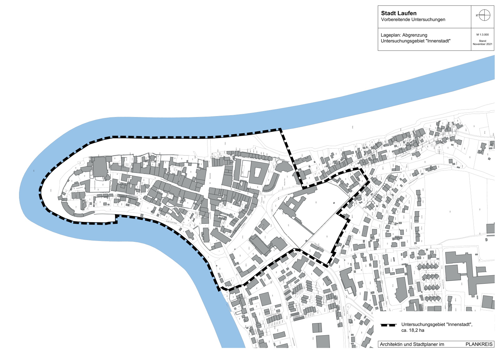 - Der Lageplan zum Untersuchungsgebiet (Plankreis, Stand: November 2021, M 1:3.000) wird Bestandteil des Beschlusses.